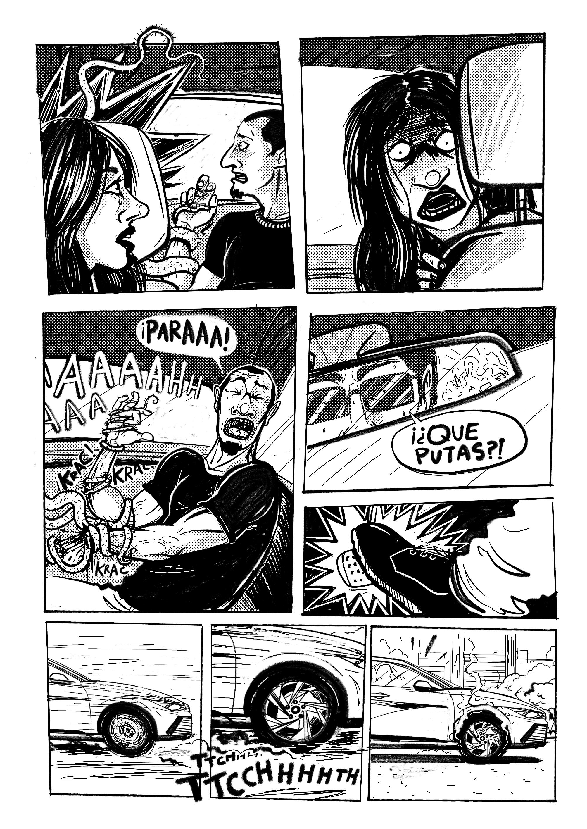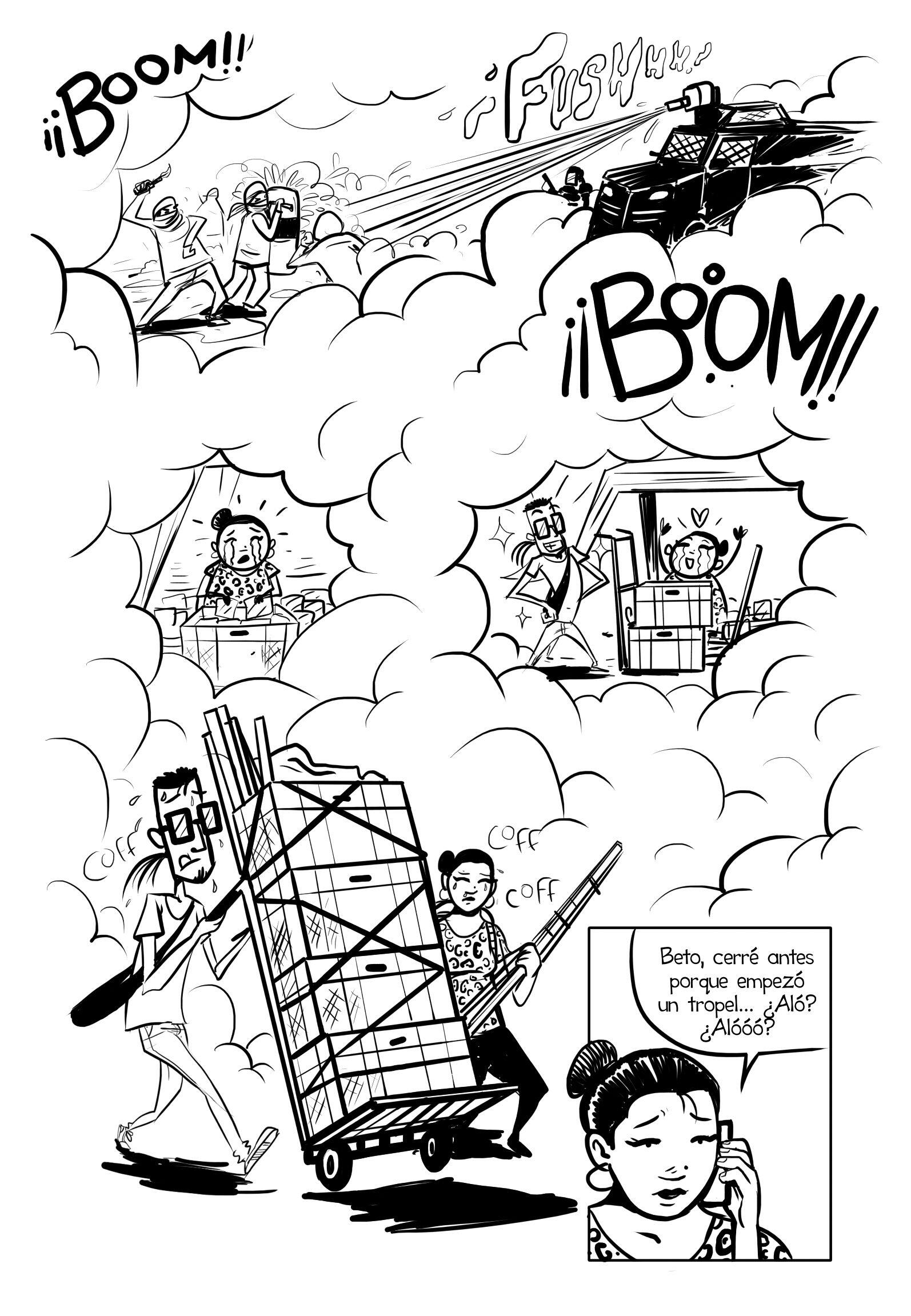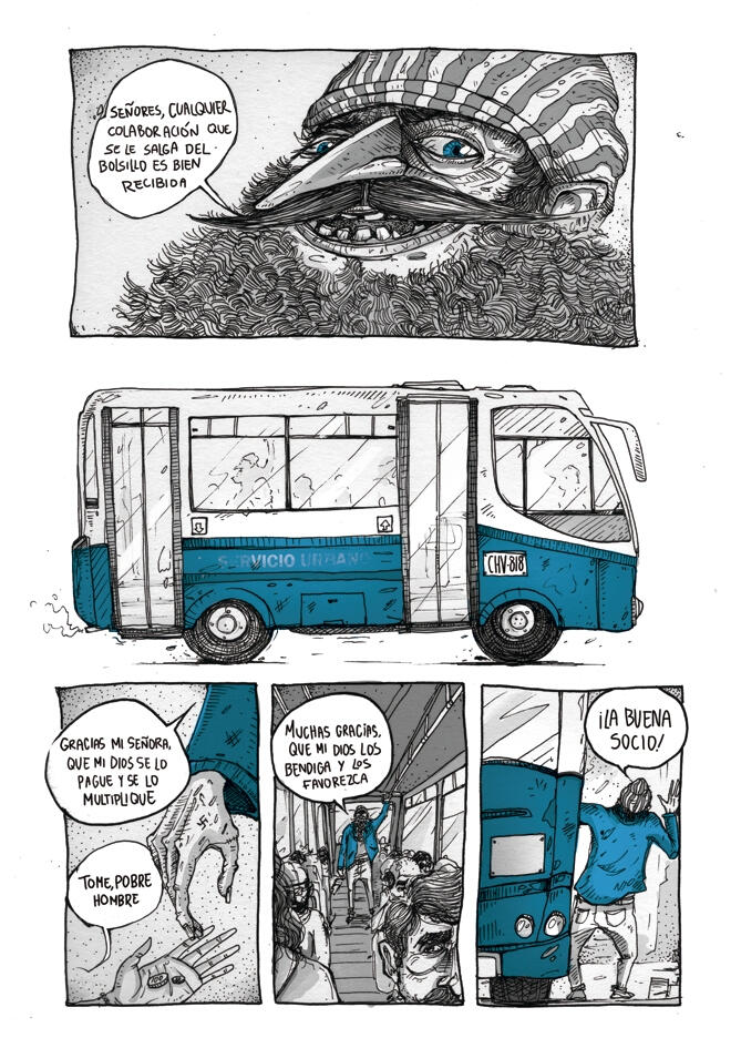 Cómic cocreado con el grupo de investigación Sociología del Dinero de la Facultad de Sociología de la Universidad Nacional de Colombia, en Bogotá. El objetivo fue abordar el tema de las “chazas” al interior de la universidad, adaptando la investigación, los testimonios recogidos y la experiencia individual de trabajar en estos espacios a través de una historia de ficción.