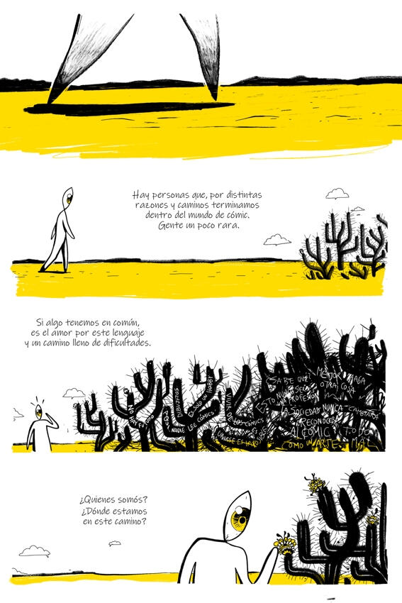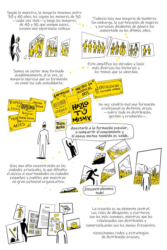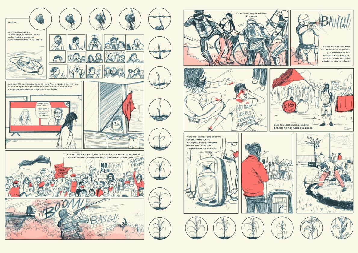 Cómic creado a partir de la lectura e interpretación personal de la investigación: A mano alzada: invirtiendo en el potencial de los cómics en Colombia. Un proyecto coordinado por Entreviñetas y realizada por Lado B, con el apoyo del Fondo Internacional para la Diversidad Cultural (FICD) de la UNESCO, así como del Ministerio de las Culturas, los artes y los saberes de Colombia y de la Biblioteca Nacional de Colombia.
