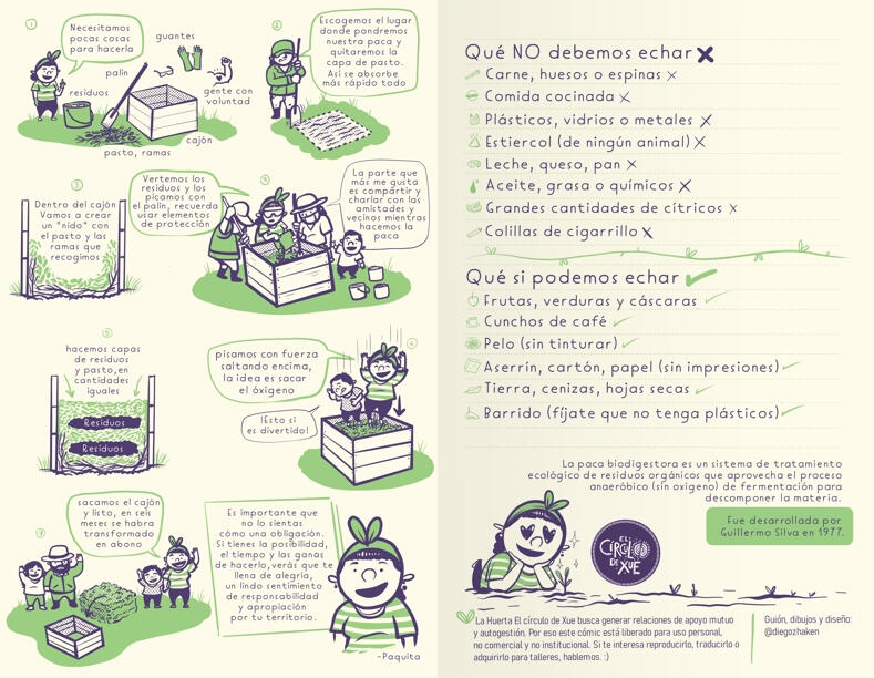 Cómic corto que invita al tratamiento responsable de nuestros residuos orgánicos a través del proceso ecológico conocido como la “paca biodigestora”, patentado por Guillermo Silva en 1977. Fue realizado en el marco del Festival de la Paca Biodigestora, un proyecto ganador del Programa Distrital de Estímulos de Bogotá 2025, realizado en la localidad de Puente Aranda.