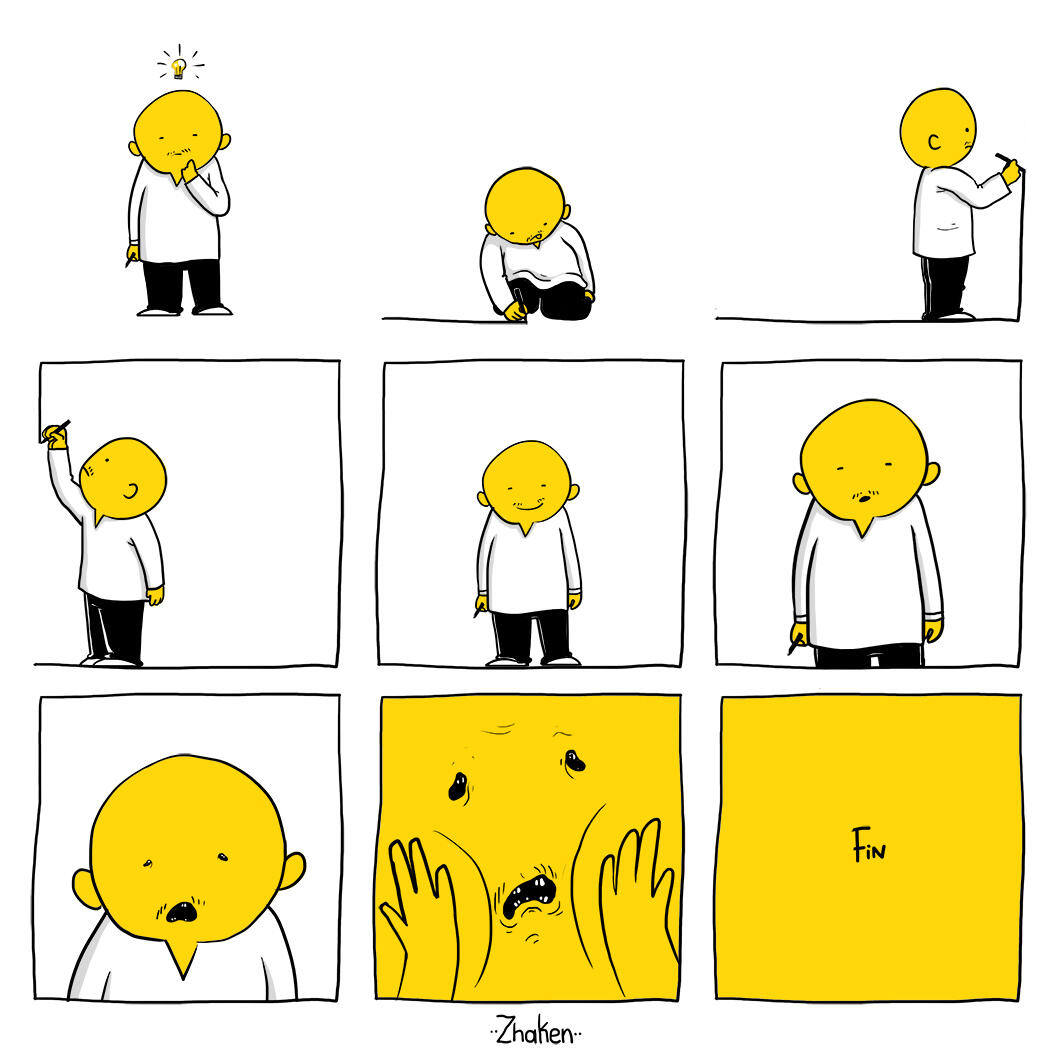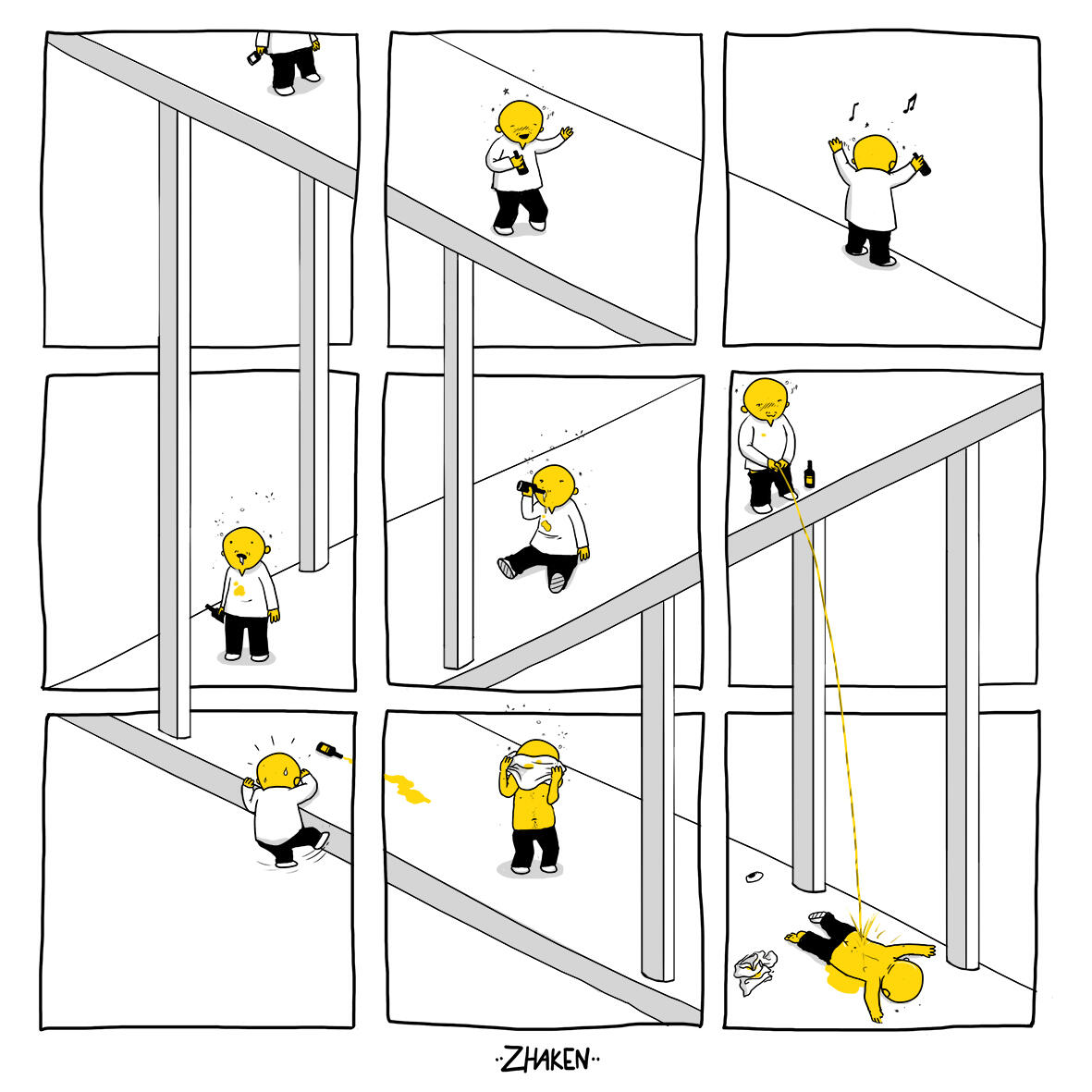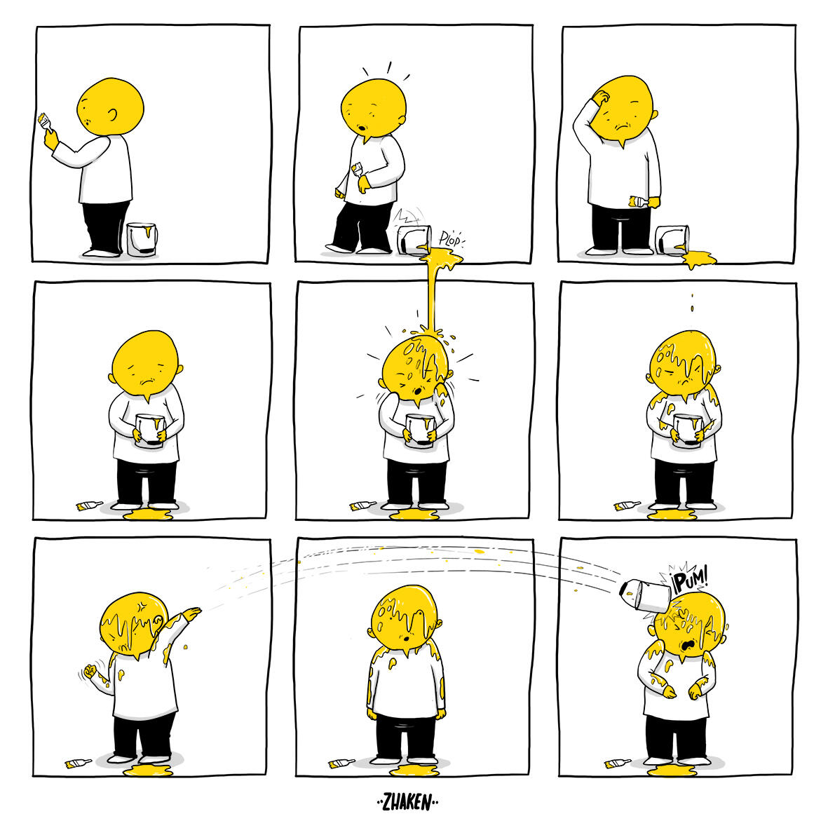 Shortie es un personaje amarillo, torpe y desafortunado que existe en un universo de nueve viñetas. Un ejercicio narrativo en cúal el lenguaje del cómic traza un juego con la vida de este personaje y los pensamientos del autor.